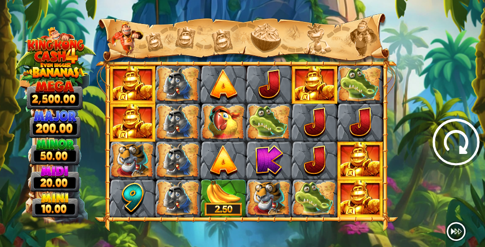 When opening King Kong Cash Even Bigger Bananas 4 for the first time, the overall structure of the game becomes clear quite quickly. The reels are arranged in a grid designed to produce frequent visual activity without overwhelming the player. Wins tend to appear regularly enough to keep the session moving, yet not so frequently that the bonus features lose their importance.